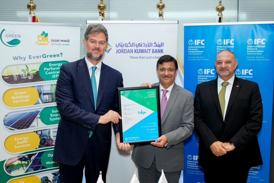البنك الأردني الكويتي أول بنك في المملكة يحصل علىشهادة "إيدج" للأبنية الخضراء من مؤسسة التمويل الدولية